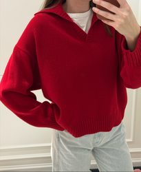 Светр-поло у червоному кольорі, з вовни та кашеміру.